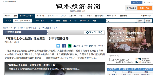 巷では「写実絵画」がブームだそうです。以前に比べて価格が2倍、3倍に上がっていると、たまたまWeb版の日経新聞で見かけました。