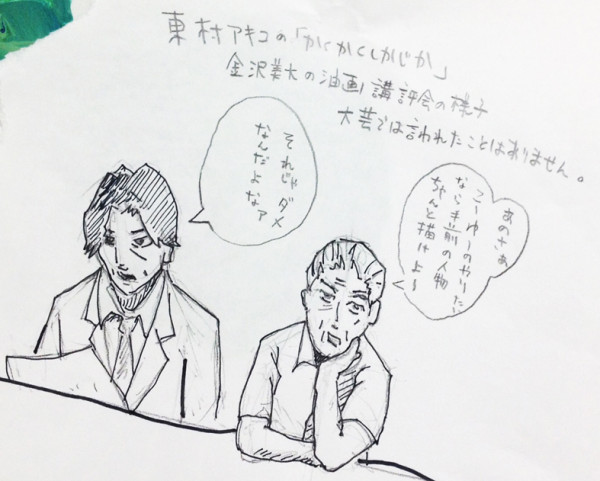 とりわけ伝統を重んじる金沢や京都にある美術系大学では、前回のブログで書いたような「軽い」表現に対しては教授陣から無言のプレッシャーがある、と聞くことが多々あります。マジか…日本画科とか特に教授めんどくさそうやな。そういえば東村アキコさんの自伝マンガ「かくかくしかじか」では金沢美大の油画の作品講評会の教授陣の怖さが描かれていました。